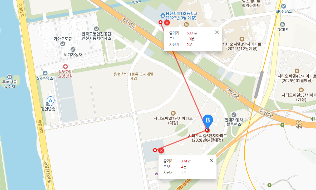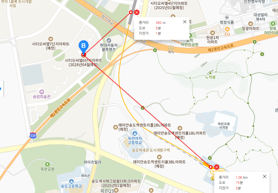 - 교통: KTX 송도역이 1km 정도 거리에 있으며, 수인분당선 학익역이 개통 예정입니다.