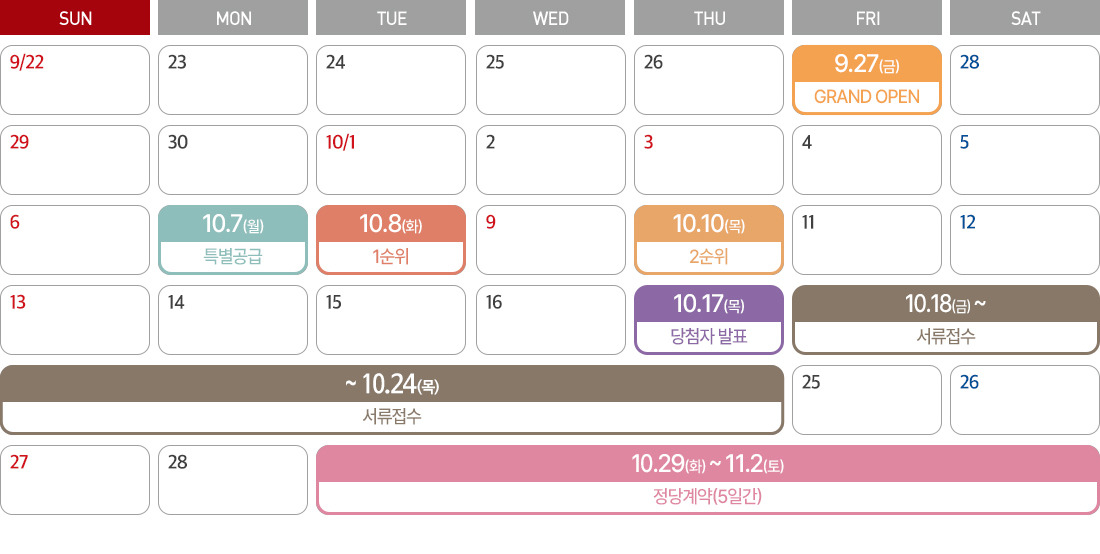 | 특별공급 청약 | 10월 7일 |