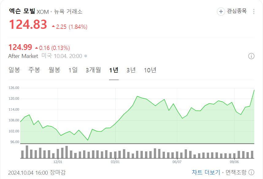 - 투자 장점: Exxon은 에너지 시장에서의 지배적인 위치를 바탕으로 안정적인 배당을 제공하며, 장기적인 수익을 기대할 수 있습니다. 특히, 최근 저탄소 에너지 프로젝트에 투자하여 미래 성장을 도모하고 있습니다.
