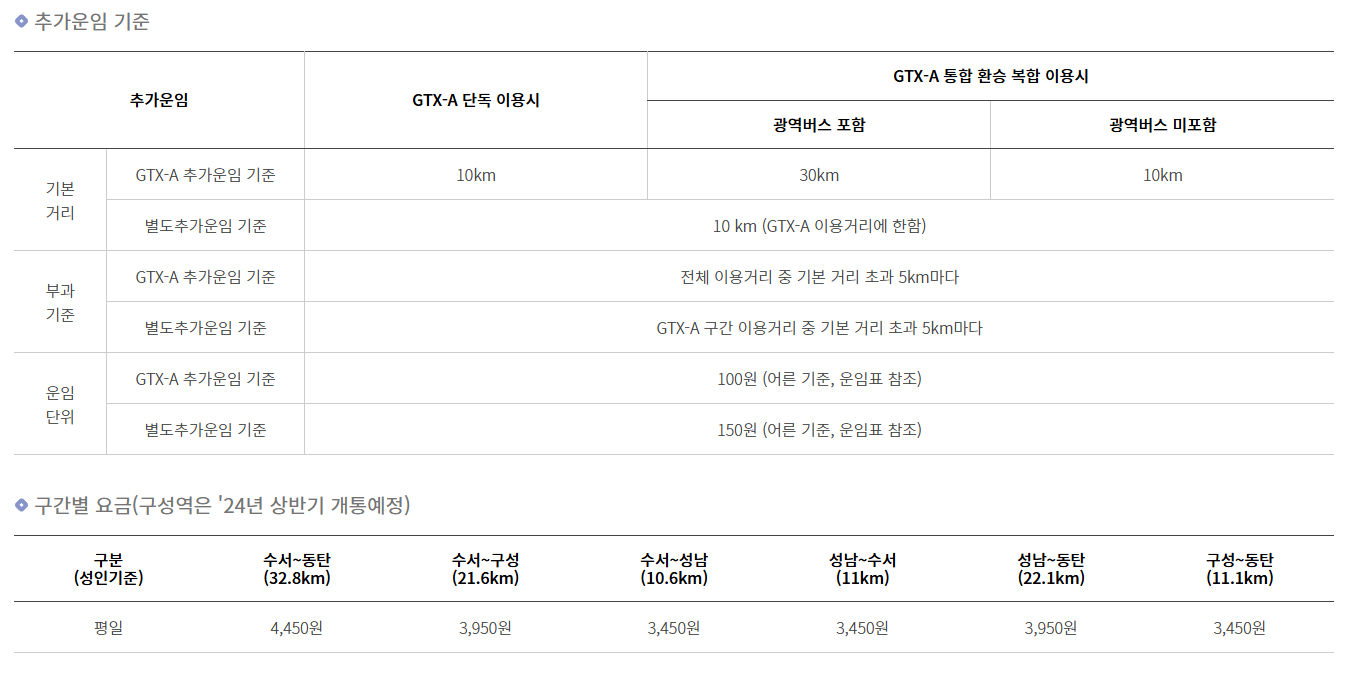 GTX-A 요금 및 운임 체계